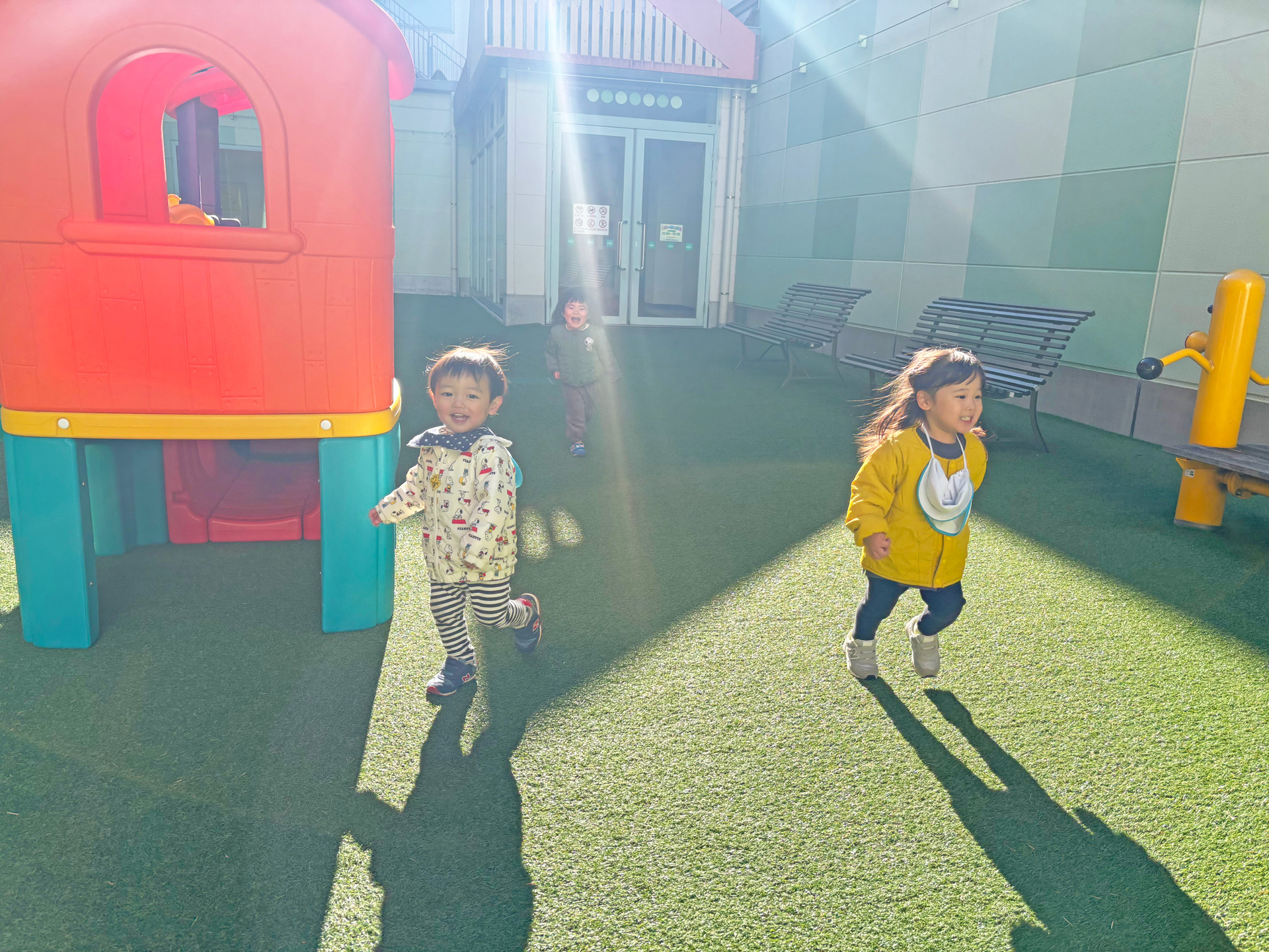 モラージュ屋上や近隣の松ヶ崎中央公園を利用し、屋外での運動やお散歩をします。