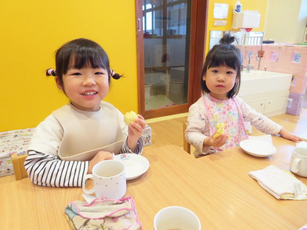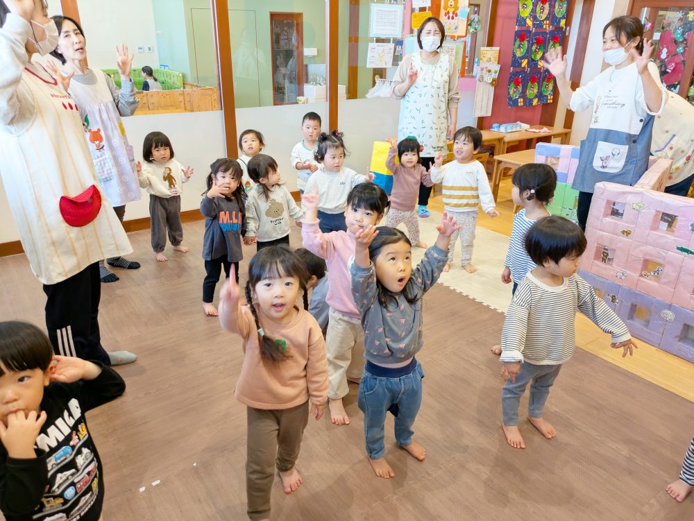 一日の流れ 0歳~2歳児 7:30~順次登園自由あそび 9:30~朝の会(歌・あいさつ)出席確認おやつ 10:00~クラス活動(製作や散歩等) 11:00~昼食着替え 12:00~午睡排泄 15:00~おやつ 15:30~帰りの会(歌、あいさつ)自由あそび 16:30~順次降園 18:30~時間外保育開始 年間行事 4月 はじめましての会 子どもの日集会 5月 新入・進級記念撮影 食育(苗植え) 6月 歯みがき集会 歯科健診 両親参観 食育(そら豆の皮むき) 内科健診 7月 プール開き 七夕集会 夏まつり 食育(とうもろこしの皮むき) 8月 希望保育期間 9月 園児引き渡し訓練 お月見集会 食育(お米が出来るまでを学び、おにぎり作り) 内科健診 10月 運動会 ハロウィンパレード 11月 生活発表会 園外保育 観劇会 食育(スイートポテト作り) 12月 おもちつき クリスマス会 歯科健診 1月 個人面談 食育(うどん作り) 2月 豆まき集会 作品展 食育(いちごジャムヨーグルト作り) 3月 ひなまつり集会 お別れ会