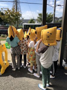 子どもたちは保育者の指示をしっかり聞きながら、落ち着いて避難を始めました。