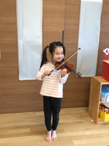 また、年長さんクラスでは、実際にバイオリンに触れ、演奏を体験する時間も設けていただきました😊❤️