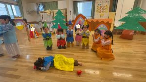 先日の発表会当日は、年長さんにインフルエンザでお休みのお友だちが多く、全員そろっての発表ができませんでした。